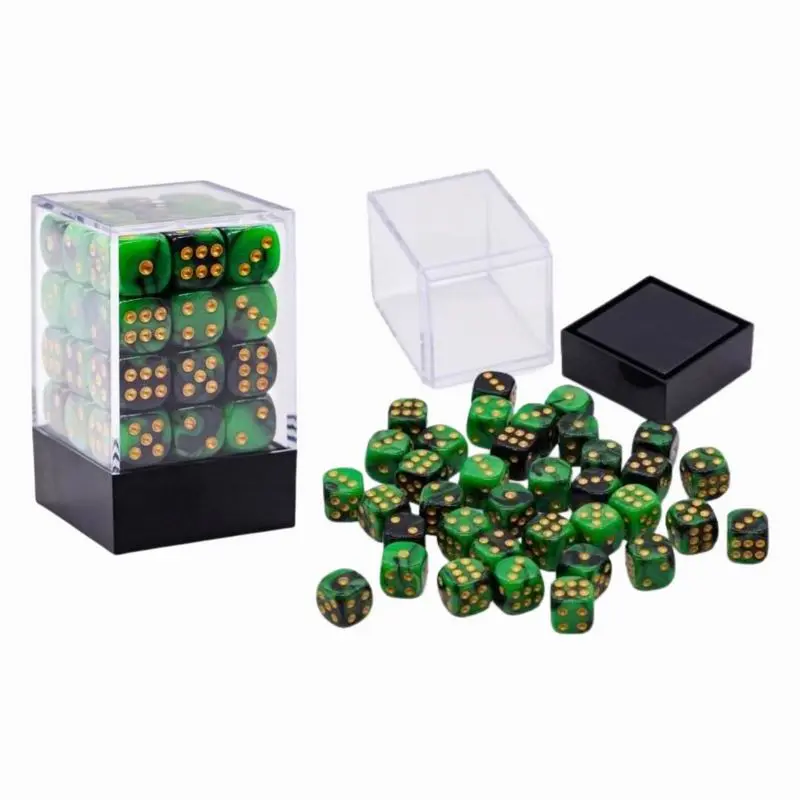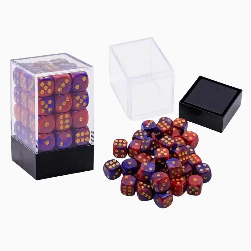 | 36pcs 0.472 Inch Dice Set with Clear Transparent Box | Blue mixed with Black, Green mixed with Black, Pink mixed with White, Purple mixed with Black, Red mixed with Blue, Transparent Yellow |